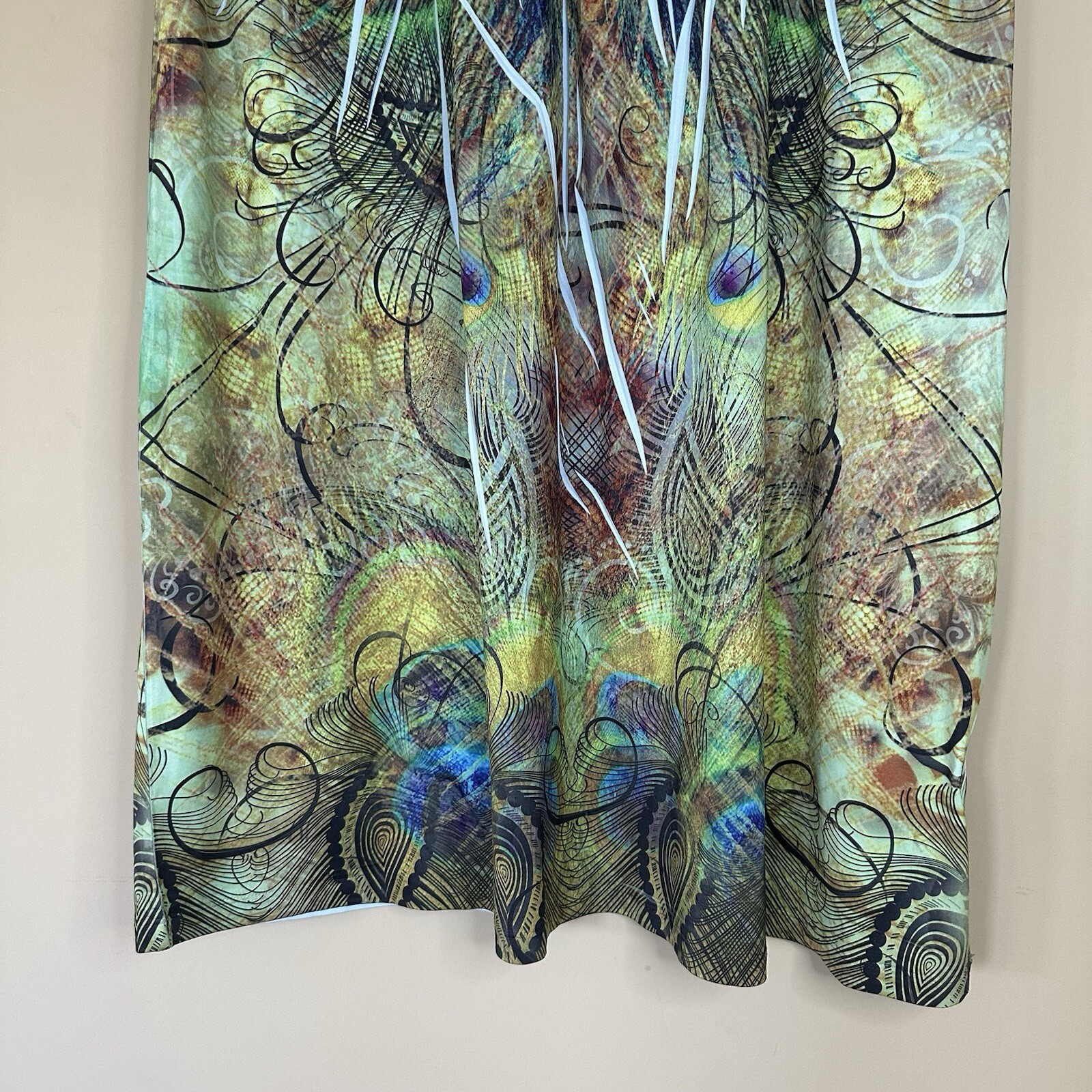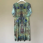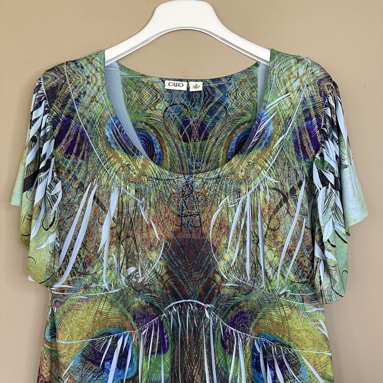 Y2K 1990s Stretchy Peacock Babydoll Dress Women's size Medium Brand: Cato Green / Blue / Purple Flutter Sleeve Scoop Neck Knee Length Earth Fairy Sparkle Forrest Stretchy High Waist CONDITION: excellent STYLE TAGS: butterfly comfort boho bohemian hippie casual MEASUREMENTS length: 40" sleeve: 8" armpit to armpit: 18" straight across waist: 18.5" straight across hips: 26" Packaged with care I will ship it out within 2 business days Smoke free home Offers welcome.