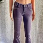 These NWT purple low-rise flare jeans are total early-2000s revival goals! With glam studded accents on the front pockets and a flattering slim-fit silhouette, they’re the perfect throwback piece for styling up your Y2K dreams. Tagged 28, but best fit is 00/XXS — please see measurements in photos. ✨ New with tags ✨ Soft purple wash with light fading ✨ Studded embellishment on front pockets ✨ Flare leg with slight stretch ✨ Low to mid rise (depending on torso length) #Y2KDenim #BratzFit #FestivalJeans #LowRiseRevival