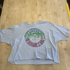 This is a Y2K style Sublime cropped t-shirt in size XL for women. The shirt features a faded blue color with a crew neckline and short sleeves. The front of the shirt has a "Lovin' Is What I Got" graphic.