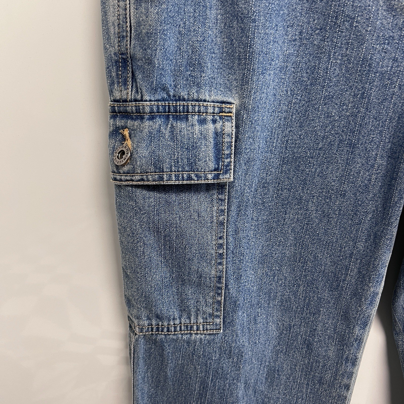 VTG Y2K 2004 Tommy Hilfiger Cargo Jeans Capris Grunge Skater Blue Size 4 Pockets Waist 31 inches Inseam 24.5 inches Made in May 2004