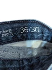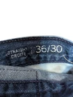 This is a preppy Tommy Hilfiger men's jeans from the year 2000 with a straight leg. The closure is a combination of a zip and button, and the fabric is made of cotton denim with a medium wash. The jeans have pockets and are designed to fit a waist size of 36 inches with an inseam of 28 inches. The brand is Tommy Hilfiger and the style is straight. Label on the back is faded. One spot discoloration on the back pocket. See all pictures