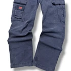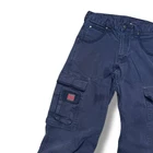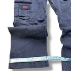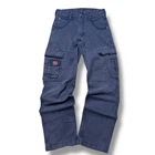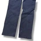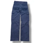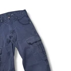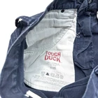 Description: Vintage Tough Duck cargo work pants with a rugged, distressed look. Features durable heavyweight cotton construction with multiple utility pockets. • Size: 30x32 • Color: Faded blue • Material: 94% cotton, 6% polyester • Features: Cargo pockets, reinforced stitching, button and zip fly • Condition: Distressed with visible stains and wear, adding to the workwear aesthetic