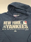 This is a men's New York Yankees hooded sweater in size large, officially licensed by Majestic. It features the team's colors of blue and white, designed for Major League Baseball fans. The sweater is part of the Therma Base collection and is perfect for staying warm and showing support for the New York Yankees. Check Pictures for flaws and measurements