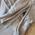 Featuring a cool Y2K Nike men's pinstripe hooded track jacket in a size XXLT. This is a great everyday style. It's in a nice neutral taupe beige color with a thin white pinstripe print. On the hood there's a minimalist tonal wide stripe print. It has the look of a track jacket being layered over a sweatshirt. There's a double full front zip with the Nike logo on the top zipper. There's sleeve zippers to give a looser fit There's nice large slant front pockets. There's orange contrasting drawcords on the hood. There's a couple of faint small spots on the front and one faint small spot on the back. They are hardly noticeable. They might come out with some stain treatment. Please refer to all the photos for the condition. Otherwise, it's in very good condition. Add it to your closet today! brand: Nike size: XXLT fabrication: 80% cotton/ 20% polyester measurements: approximate pit to pit: 25.5" pit to hem: 19" shoulder to hem: 32.5" sleeve length: 30" #gorpcore #soccer #blokecore #y2k #retrocore #hiking #techwear #utility