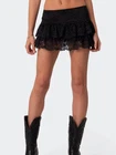 $ 17.95Streetwear Y2k Ruffles Mini Skirts Women Sweet Kawaii High Waist Lace A Line Ski
