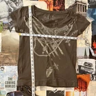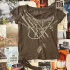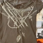 y2k graphic top brown with lighter accents chain print on the front wide neck ties at the bottom on the side y2k 2000s preppy trendy timeless old school fairy core cottage core cottagecore indie grunge alt emo