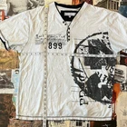 y2k grunge top white with black accents graphics just on the front y2k 2000s trendy timeless old school streetwear skate skater drip indie retro baggy urban alt alternative emotes grunge goth scene