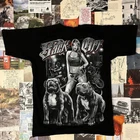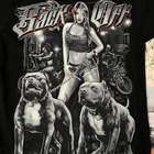 y2k style graphic tee black t-shirt features a girl standing with pitbulls on the back that says “back off” front has a smaller graphic with a pitbull y2k vintage retro 2000s preppy trendy timeless old school streetwear skate skater drip indie retro tee baggy urban