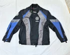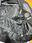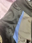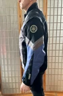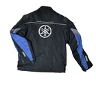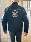 This YAMAHA Racing Jacket in size 3XL features a vintage design with accents of a logo on the front. The outer shell material is nylon with a softshell fabric type, suitable for winter, fall, and spring seasons. The black jacket with grey and blue details has a full zip closure and a mid-length fit, perfect for travel or casual wear. With a biker style and a theme of motorcycle racing from the 90s, this jacket embodies a sporty and retro look for men who appreciate a classic biker aesthetic.