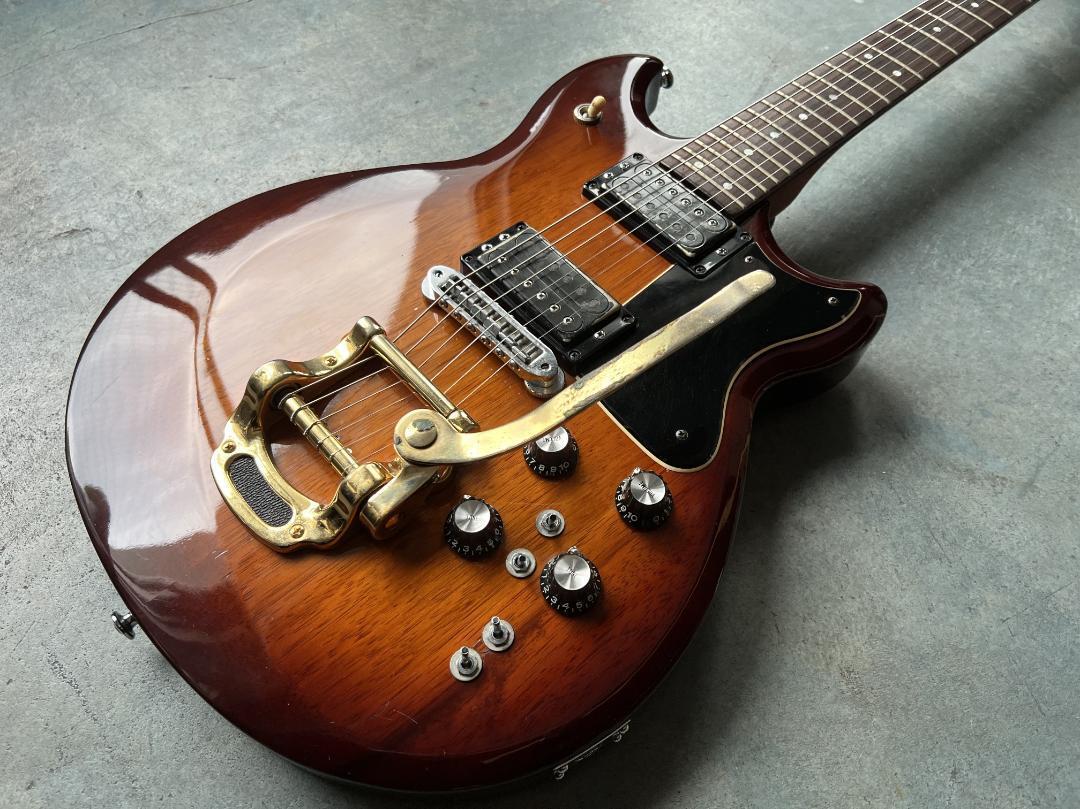 【Notice】 ※You cannot cancel an order after it has been placed and before it has been shiped. (Recently, there have been many cancellations after ordering.Please coisider carefully before purchasing.) ---------------------------------------------------------------------------------------------- 【Item Description】 Below are my personal opinions, but I think it's in very good condition for a 40-year-old vintage guitar, with no fatal damage. The neck has a slight forward bow, the truss rod has not been adjusted since I bought it, the frets are over 60% remaining, and it's in good playing condition. The sound has not been checked, but there are 4 additional switches. I have performed a simple maintenance, replacing the strings with new ones and applying Howard's orange oil to the fingerboard. Accessories include a leather soft case. This is a used item, so it is sold as is. The "YAMAHA SF-500" is a solid-body guitar that was only manufactured and sold for a short period from 1978 to 1980. While it looks similar to an SG, it has a body thickness and weight almost identical to a Les Paul, with a slightly wider and shallower double cutaway plus 24 frets. Interestingly, the design of this SF has been carried over to the Revstar series currently on sale. The SF series consists of the SF1000 at the top, followed by the SF700, and then this SF500. This SF500 is the only one that uses different body and neck materials than the top two models. The SF1000 has an alder + maple body and a maple + ebony fingerboard neck, while the SF700 is the same as the SF1000 except for the rosewood fingerboard. The SF500 has a town + mahogany body and a mahogany + rosewood fingerboard neck. Body: Town + Mahogany Color: Brown Sunburst Neck: Mahogany + Rosewood Fingerboard: Rosewood (24 frets) Joint: 4P Bolt-on PU: Original humbucker x2 Weight: Approx. 4.3kg The craftsmanship is typical of Yamaha, with a resonant sound throughout the body and a very playable high position thanks to the cutaway. It also has a gold Bigsby-style tremolo arm that has been added later. * I think it would be even easier to play if you replaced it with a roller bridge. ----------------------------------------------------------------------------------------------- 【Shipping】 Fedex priory (Free shipping, of course) ※Currently, economy service is not available. ※An additional shipping fee of 150 USD is required only for Australia. ※For Australia, we may use DHL. ※EMS is not available. 【Import Duties】 Import duties, taxes and charges are not included in the item price.These charges are buyer's responsibility. Please check with customs for these addtional costs before bidding or purchasing. Even if you ask us about Import duties, we cannot give you an exact amount.