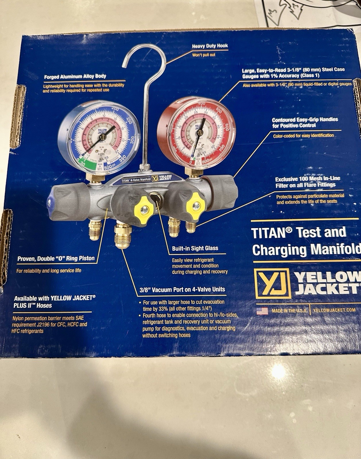 YELLOW JACKET Titan 4-Valve Manifold Gauge Set for R-410A R-22 Charging & Test