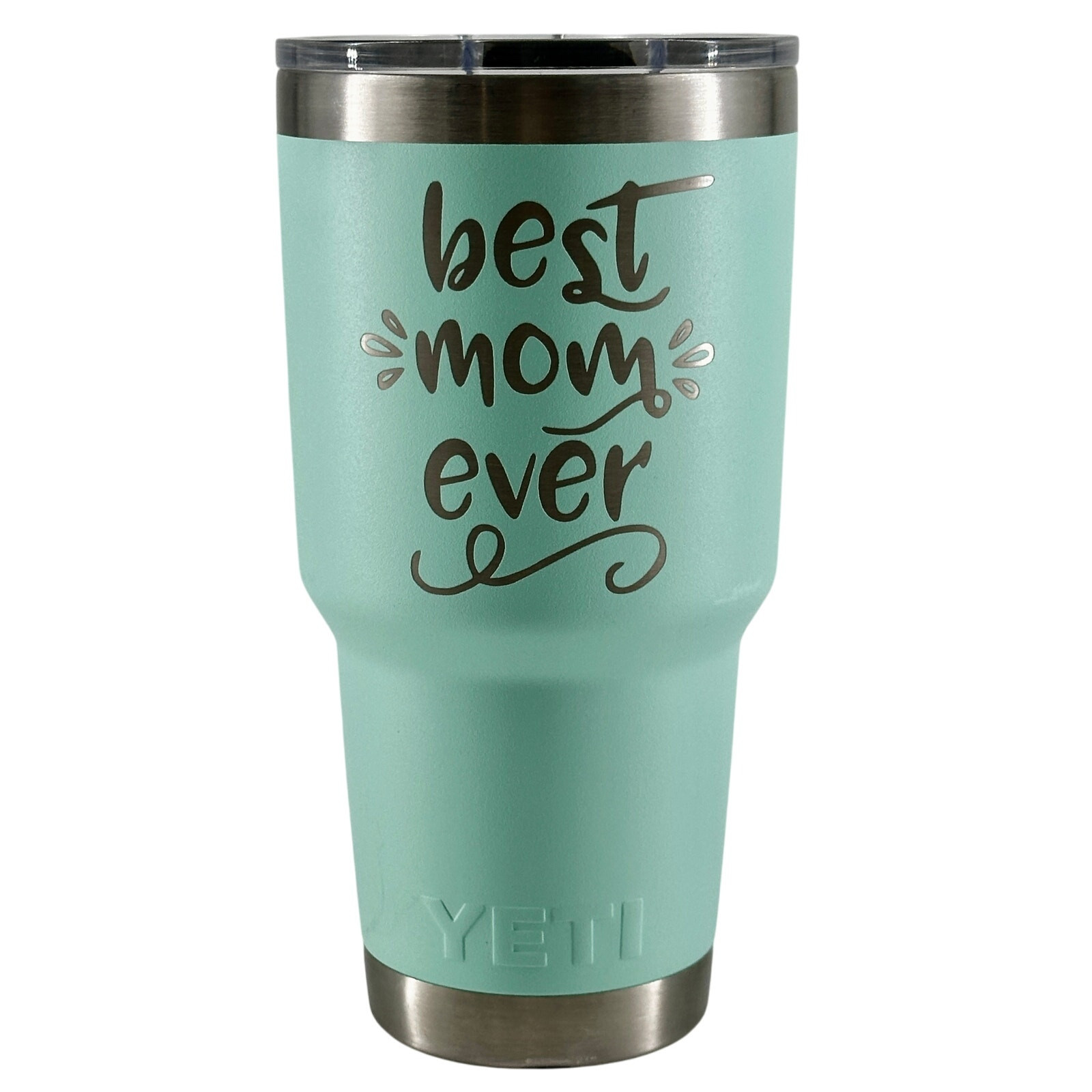 Eteched with BEST MOM EVER. Durable DuraCoat Finish: Designed to withstand tough outdoor conditions, this vibrant coating resists fading, peeling, or cracking while enhancing the Rambler's grip. Superior Insulation: Double-wall vacuum insulation keeps your drinks icy cold or steaming hot for extended periods. Premium Stainless Steel Construction: Crafted from kitchen-grade 18/8 stainless steel, it’s puncture-proof, rust-resistant, and built to last. User-Friendly Design: BPA-free, featuring a No Sweat Design to keep your hands dry, and fully dishwasher-safe for effortless cleaning. Clear, Shatter-Resistant Lid: The durable, dishwasher-safe lid allows quick and easy monitoring of your drink's status.