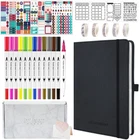 【Bullet Dotted Journal Set with Abundant Accessories】All-in-one planner notebook set with 1 A5 hardcover bullet dotted journal notebook, 12 dual tip colored pens, 8 planner sticker sheets, 4 reusable journal stencil sheets, 5 washi tapes, 2 stencil rulers, 1 gift card, 1 gift box. With this ultimate journaling set, you can design the journal of your dreams in no time! 【Premium 120GSM Thick Paper Dot Journal Notebook】This A5 journal (5.7in*8.3in*0.9in) features a vegan leather cover, 200 pages, 120GSM acid-free thick off-white paper, NO BLEED. Each page contains 925 dotted grids with X25 * Y37 dots, 5mm spacing and medium visibility. The lay-flat design is comfortable for writing and drawing, with round corners, pen holder, elastic band, 2 ribbon bookmarks and expandable inner pocket for storing important things. 【12 Dual Tip Colored Pens】These 12 dual tip colored pens are water-based and non-toxic, safe for kids. Dual tip design will add more journaling fun, the 0.4 mm fine tip for precise highlighting and details, and the flexible 1 - 2 mm brush tip for easy coloring and blending. Easy-to-hold and write smoothly, work very well, perfect for bujo journal writing and drawing. 【Amazing Stencils, Stickers and Washi Tapes】This dot journal kit contains a variety of journaling supplies, incl. 8 planner sticker sheets, 4 durable journal stencil sheets, 2 practical stencil rulers and 5 decorative washi tapes. They are especially designed to help you quickly layout your pages, and easily make your journal pages into beautiful yet functional layouts, great for daily organizing and journaling. 【Versatile Use】This dotted journal starter kit is thoughtfully designed with love and care, perfect for beginners and journal lovers. You can use these journal kits to organize your daily to-dos, track your habits, plan your goals, and express your creativity! Moreover, the bullet dotted journal kit with gift box and gift card would be a great gift for your family and friends.