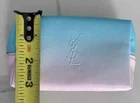 Limited edition YSL Beaute pouch -Approximate dimensions: 5" wide x 3.25" tall x 2" deep -Pink & Blue Ombre color, faux leather body (100% polyester coated with polyurethane) ; black color lining (100% polyester) -Made exclusively to promote the YSL beauty line -New *pouch collapsed for shipping