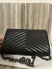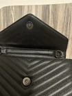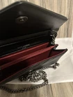 The Yves Saint Laurent YSL Envelope Wallet On Chain in Black on Dark Gray is a luxurious crossbody bag perfect for various occasions. Made with a Gray-plated chain strap and hardware, this small rectangular bag features a classic YSL design with accents like zipper closures and stitching. The beige exterior color and gold accents add a touch of elegance to the bag, making it a stylish choice for those who appreciate luxury fashion. Gold On Dark Gray Red interior Dust bag included, no box! Will receive as shown in images. Same day express shipping, great condition!