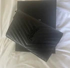 Gently used only a few times for events. It's so hard to accurately photograph it but it's black on black and gorgeous. It just sits as I haven't used it in soooo long. Really need to sell and it deserves to be used and seen! CLASSIC CASSANDRE CHAIN WALLET IN GRAIN DE POUDRE LEATHER TIMELESS CHAIN PURSE WITH CASSANDRE EMBELLISHMENT AND ICONIC CHEVRON QUILTING. THIS PRACTICAL ACCESSORY FEATURES TWO LARGE COMPARTMENTS, A ZIPPER POCKET AND CARD SLOTS. IT CAN BE CARRIED IN THE HAND AS A CLUTCH OR ON THE SHOULDER WITH ITS DETACHABLE CHAIN.