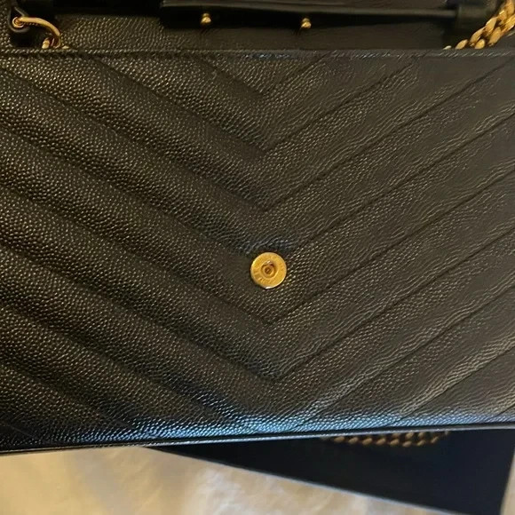 This YSL crossbody bag is absolutely stunning—the gold-on-black design is so chic and versatile! I love how it transforms from a sleek handbag to a stylish crossbody with the detachable chain. The size is perfect for essentials, and it still looks brand new since I’ve barely used it. Comes with a dust bag and ships fast—such a great purchase!