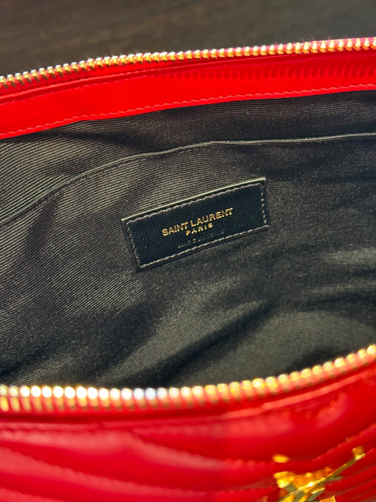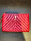 Saint Laurent Cassandre Matelassé Pouch in Red Leather Introducing the stunning Saint Laurent Cassandre Matelassé Pouch in a vibrant red leather. A perfect combination of modern sophistication and classic design, this pouch features the iconic YSL logo and a quilted pattern that adds a touch of elegance to any ensemble. Compact yet functional, it is the ideal accessory for carrying your essentials in style. Key Features: Brand: Saint Laurent Model: Cassandre Matelassé Pouch Color: Red Material: Soft and durable leather with a luxurious matelassé quilted texture Hardware: Gold-tone YSL monogram logo Size: Compact and slim, perfect for holding essentials such as cards, cash, and a phone Closure: Top zipper closure for easy access Interior: Lined interior with ample space for your everyday items Condition: Pre-owned, in excellent condition with minimal signs of wear. The red leather remains vibrant, and the gold-tone YSL logo retains its beautiful shine. The pouch is carefully maintained and comes with its original dust bag. This Cassandre Matelassé Pouch is a versatile and chic addition to any collection. Whether used as a standalone clutch or a stylish pouch inside a larger bag, it adds a pop of color and luxury to your look. Price: RRP £675. Our price £400 Shipping: Fast, secure shipping options available For any questions or additional photos, feel free to contact me!