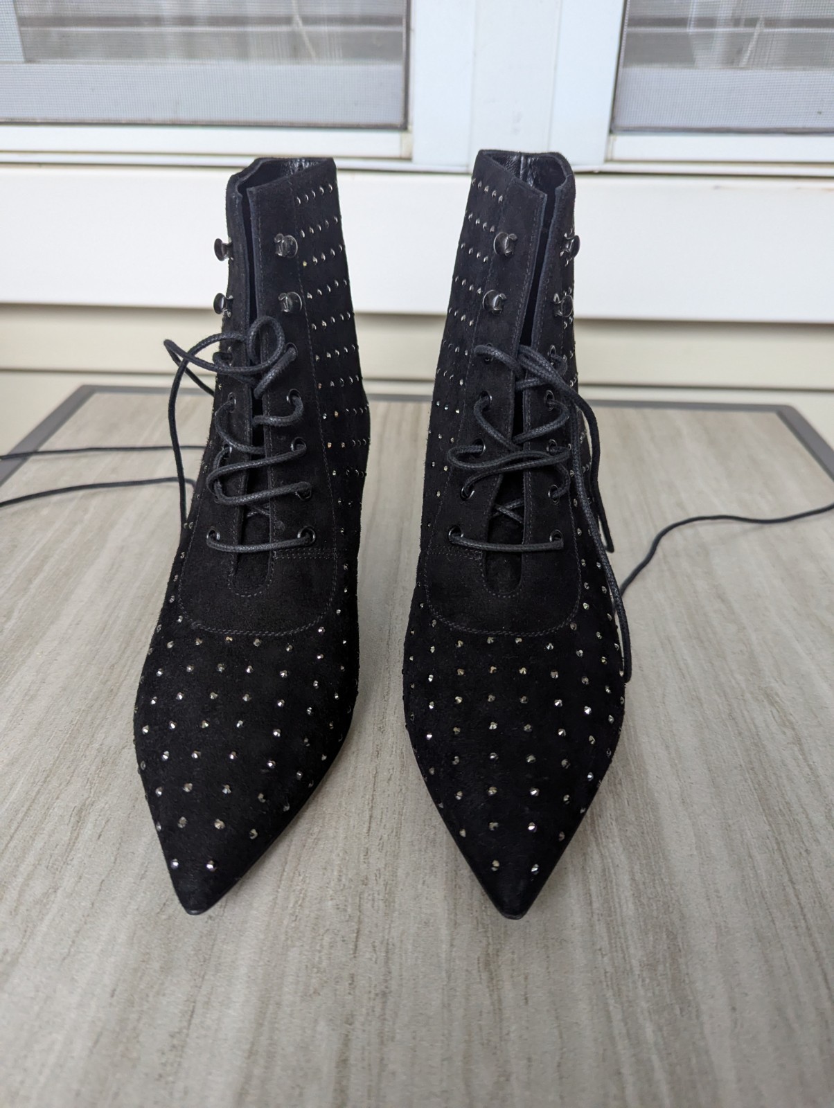 100% authentic Yves Saint Laurent women's heels. These are Kid Scamosciato Black ankle boot heels. Size 36 (US 5.5). Come in original box with dust bag. These are brand new, never worn. Excellent condition. Come from a smoke-free and odor-free home. Free shipping in the US.