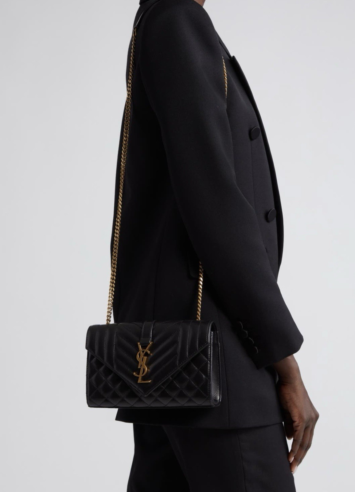 Brand new and gorgeous, never worn. I purchased this from Nordstrom in 2024 and it has remained in its dust bag, fully tagged, with brand/authenticity card, completely unused. I can provide proof of purchase upon request. *Shipping costs reflect additional insurance coverage for high value item. Product details: Exquisite matelassé stitching and an iconic gilt monogram refine a streamlined bag swung from a gilded chain strap. • Magnetic-snap flap closure • Pull-through chain strap • Exterior slip pocket; interior slip pocket • Lined • Leather • Made in Italy • Designer Clothing • Item # 10072213 Size details: 8”W x 5”H x 2 1/2”D 22 1/2” crossbody strap drop