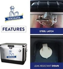 How does the cooler work? Our cooling technology is not comparable with other cool boxes. If you combine the Cooler Box Correct use, the temperature inside can be kept constant for many days - without power supply, in any climate zone, anywhere in the world. Product Information: Product Name: Waterproof Metal Ice Cooler 54 QT Yakimoto Vintage Stainles Steel Ice Chest Product Model: 2024JHH001 6 Capacity: 51 Liter Material: Stainless Steel+PU+Aluminium Size(Inch): 23.6 " x16. 5 " x16.3 ", Size(Cm); 60x42x41.5 cm Packing: Each piece in a carton Meas.: 62x43x47.5 cm G.W/N.W: 7.3/8.5 KG S · Huge 51 L (54 qt) Capacity: Portable ice chest features a generous 51 liter (54 quart) capacity that can hold up to 85 standard soft drink cans so you have room for whatever you need · Built-In Bottle Opener: This cooler features a bottle opener conveniently attached to the outside so you don?t have to scramble or search when you want a cold one · Eco-Friendly Cooling On the Go: Environmentally-friendly cooler features premium insulation and a securely locking steel latch to keep your drinks and snacks cool without electricity · Durable Construction: Expert craftsmanship and quality materials including rustproof stainless steel exterior and a rugged plastic base mean this ice chest is in it for the long haul · Easy to Clean: Stain-resistant food-grade plastic lining and leak-proof channel drain for no-tilt draining make emptying and cleaning your cooler a breeze Product Description This durable 51L / 54 Quart stainless steel ice chest is the ideal personal cooler to keep your favorite foods and beverages chilled and ready to drink. Fill this insulated cooler with ice and pre-chilled drinks and snacks for environmentally safe storage without the need for electricity. The solid steel latch and non-toxic plastic liner trap cold air inside for maximum efficiency, and the leak-proof channel drain makes cleanup a breeze. With its durable stainless steel finish, easy-to-carry rubberized handles and built-in bottle opener, this ice chest is the perfect accessory for day trips, tailgating, boating, fishing, hunting, camping or your next backyard BBQ. Good helper for you when go outside. Featuring portable, it can be applied in various situations, when you go for a long-distance self-drive travel, or you go out for a picnic and camping, or you use it as a moveable medical cooler box, etc. There is no doubt it plays an important role in outside activities. Our high-quality cool boxes offer you maximum independence and optimum cooling without electricity. Thanks to innovative high-performance insulation and special temperature elements, food and drinks stay fresh or frozen for days. Perfect for camping, outdoor adventures and everyday use, our robust, easily transportable cool boxes combine sustainability and efficiency. Don’t hesitate to Choose This Cooler!
