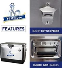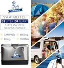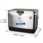 How does the cooler work? Our cooling technology is not comparable with other cool boxes. If you combine the Cooler Box Correct use, the temperature inside can be kept constant for many days - without power supply, in any climate zone, anywhere in the world. Product Information: Product Name: Waterproof Metal Ice Cooler 54 QT Yakimoto Vintage Stainles Steel Ice Chest Product Model: 2024JHH001 6 Capacity: 51 Liter Material: Stainless Steel+PU+Aluminium Size(Inch): 23.6 " x16. 5 " x16.3 ", Size(Cm); 60x42x41.5 cm Packing: Each piece in a carton Meas.: 62x43x47.5 cm G.W/N.W: 7.3/8.5 KG S · Huge 51 L (54 qt) Capacity: Portable ice chest features a generous 51 liter (54 quart) capacity that can hold up to 85 standard soft drink cans so you have room for whatever you need · Built-In Bottle Opener: This cooler features a bottle opener conveniently attached to the outside so you don?t have to scramble or search when you want a cold one · Eco-Friendly Cooling On the Go: Environmentally-friendly cooler features premium insulation and a securely locking steel latch to keep your drinks and snacks cool without electricity · Durable Construction: Expert craftsmanship and quality materials including rustproof stainless steel exterior and a rugged plastic base mean this ice chest is in it for the long haul · Easy to Clean: Stain-resistant food-grade plastic lining and leak-proof channel drain for no-tilt draining make emptying and cleaning your cooler a breeze Product Description This durable 51L / 54 Quart stainless steel ice chest is the ideal personal cooler to keep your favorite foods and beverages chilled and ready to drink. Fill this insulated cooler with ice and pre-chilled drinks and snacks for environmentally safe storage without the need for electricity. The solid steel latch and non-toxic plastic liner trap cold air inside for maximum efficiency, and the leak-proof channel drain makes cleanup a breeze. With its durable stainless steel finish, easy-to-carry rubberized handles and built-in bottle opener, this ice chest is the perfect accessory for day trips, tailgating, boating, fishing, hunting, camping or your next backyard BBQ. Good helper for you when go outside. Featuring portable, it can be applied in various situations, when you go for a long-distance self-drive travel, or you go out for a picnic and camping, or you use it as a moveable medical cooler box, etc. There is no doubt it plays an important role in outside activities. Our high-quality cool boxes offer you maximum independence and optimum cooling without electricity. Thanks to innovative high-performance insulation and special temperature elements, food and drinks stay fresh or frozen for days. Perfect for camping, outdoor adventures and everyday use, our robust, easily transportable cool boxes combine sustainability and efficiency. Don’t hesitate to Choose This Cooler!