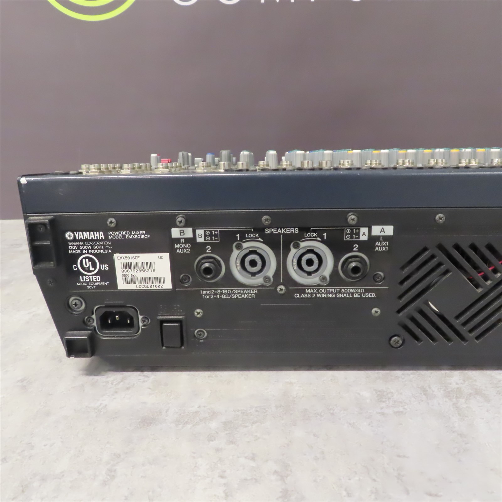 Model:EMX5016CFFeatures:High-Pass Filter Function, Graphic Equalizer, 3-Band Equalizer, 4-Band Equalizer, Fader-Type Control, Built-in Power AmplifierType:Powered Mixergtin13:0027108000411Number of Phono Inputs:1MPN:EMX5016CFUPC:0086792856216, 0027108000411Number of Buses:0Weight:29.3lbs.Number of Mic Inputs:1Inputs/Outputs:RCA/Coaxial in (S/PDIF), Analog RCA/Coaxial Out, Analog RCA/Coaxial in, Analog Xlr Out, Analog XLR In, RCA In (Aes3)Number of Line Inputs:16Ean:0086792856216, 0027108000411Depth:19.4inHeight:6.1inBrand:YamahaGTIN:0086792856216, 0027108000411Number of Channels:16Suited for:Monitor, Front of House (FOH), Stage/Live Sound, Recording & Live Sound