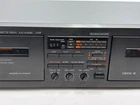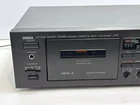 This is a Yamaha KX-W282 Natural Sound stereo double cassette deck with a black color. It features a headphone jack and plays cassette tapes. The model includes audio outputs for headphone and stereo L/R RCA connections. The product has been serviced and tested. Belts replaced with new belts counter belt missing so counter belt so that doesn't function however plays tapes perfectly. Nice unit.