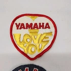 Set of 2 YAMAHA sew on patches for a jacket or hat. Vintage NOS (New Old Stock). YAMAHA I LOVE YOU and the Yamaha motorcycle symbol. Yamaha Sew on patch Vintage Motorcycle patch Item will be shipped promptly