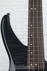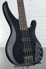 This Value-packed Bass Is Loaded with Features Loaded with professional features, the Yamaha TRBX604FM offers incredible value in a bass guitar. A classic tonewood combination of solid alder and stunning flamed maple delivers punch, bite, and sustain by the truckload. A comfortable 5-piece maple/mahogany neck combines excellent playability with superior tone and stability. Experience maximum sonic flexibility, by way of the TRBX604FM's YGD H5 pickups and audiophile-grade active/passive 3-band EQ. Beyond that, a high-mass die-cast bridge and innovative headstock design provide optimal vibration transfer and tuning stability. A battery-alert LED rounds out the impressive TRBX604FM.A classic tonewood recipe The TRBX604FM is built from quality tonewoods. A solid alder body provides a balanced yet punchy foundation for this bass's tone, yielding equal doses of lows, mids, and highs. A stunning flamed maple top frames the TRBX604FM's basic tone with brightness, bite, and sustain. And the added snap and warmth provided by Sweetwater is an Authorized Yamaha Dealer Genuine New Item Sweetwater's 2-year warranty and 55 point inspection Yamaha TRBX604FM 4-string Bass Guitar - Translucent Black 4-string Electric Bass with Solid Alder Body, Flamed Maple Top, Maple/Mahogany Neck, Rosewood Fingerboard, 2 Humbucking Pickups, and Active 3-band EQ - Trans Black This Value-packed Bass Is Loaded with Features Loaded with professional features, the Yamaha TRBX604FM offers incredible value in a bass guitar. A classic tonewood combination of solid alder and stunning flamed maple delivers punch, bite, and sustain by the truckload. A comfortable 5-piece maple/mahogany neck combines excellent playability with superior tone and stability. Experience maximum sonic flexibility, by way of the TRBX604FM's YGD H5 pickups and audiophile-grade active/passive 3-band EQ. Beyond that, a high-mass die-cast bridge and innovative headstock design provide optimal vibration transfer and tuning stability. A battery-alert LED rounds out the impressive TRBX604FM. A classic tonewood recipe The TRBX604FM is built from quality tonewoods. A solid alder body provides a balanced yet punchy foundation for this bass's tone, yielding equal doses of lows, mids, and highs. A stunning flamed maple top frames the TRBX604FM's basic tone with brightness, bite, and sustain. And the added snap and warmth provided by its 5-piece rosewood-capped maple/mahogany neck are the final ingredients in the TRBX604FM's classic tonal recipe. Flexible active 3-band EQ The bassists here at Sweetwater appreciate the clean, open tone exhibited by the TRBX604FM's dual YGD H5 pickups. Plug in, and you'll experience ample output and dynamic sensitivity, by way of these pickups' quad-pole-piece design and robust Alnico V magnets. Beyond that, the TRBX604FM is loaded with an audiophile-grade active/passive 3-band EQ. This flexible circuit offers a level-matched output in both passive or active modes, and tone-switching circuitry that moves seamlessly from treble control to master passive tone. And as an added bonus, a battery-alert LED prevents unexpected power losses when you're performing onstage. Comfortable 5-piece maple/mahogany neck If you're searching for extreme comfort, you'll enjoy playing the TRBX604FM. Its TRBX neck design combines a comfortable profile with 5-piece maple/mahogany construction for excellent tone and stability. This bass's refined neck joint reflects the perfect balance of strength, vibration transfer, and upper-fret access. And you'll benefit from superior tuning stability and reduced overtones, thanks to a headstock that virtually eliminates lateral string tension. Yamaha TRBX604FM Electric BAss Guitar Features: Solid alder body provides a balanced yet punchy tonal foundation Stunning flamed maple top delivers brightness, bite, and sustain YGD H5 pickups exhibit a clean, open tone with ample output and dynamic sensitivity Audiophile-grade active/passive 3-band EQ ensures maximum sonic flexibility 5-piece maple/mahogany neck yields excellent tone and stability Refined neck joint balances strength, vibration transfer, and upper-fret access High-mass die-cast bridge efficiently transfers string vibrations to the body Headstock virtually eliminates lateral string tension for superior tuning stability and reduced overtones Battery-alert LED prevents unexpected power losses when you're performing onstage Durable plate-mounted jack socket Specification Detail Number of Strings 4 Left-/Right-handed Right-handed Body Shape TRBX Body Material Alder Body, Flamed Maple Top Body Finish Gloss Polyurethane Color Trans Black Neck Material 5-piece Maple/Mahogany Radius 10" Fingerboard Material Rosewood Fingerboard Inlay Offset Dots Number of Frets 24, Medium Scale Length 34" Nut Width 1.496" Nut Material Urea Resin Bridge/Tailpiece Die-cast Tuners Covered, Die-cast Neck Pickup H5 Alnico V Humbucker Bridge Pickup H5 Alnico V Humbucker Controls 1 x master volume, 1 x balancer, 1 x master tone (passive mode), 3-band active EQ Switching 2-way toggle passive/active switch Strings .045-.100 Case/Gig Bag Sold Separately RETURN INFORMATION We want you to be completely happy with your purchase from Sweetwater. If you are not satisfied with your product, you may return it for a refund of the purchase price within 30 days. If your purchase was eligible for Free Shipping, the shipping cost will be deducted from your credit or refund. Returns must be in the complete and original packaging with all accessories and complete documentation (Owner's Manual, warranty card, quick start guides, etc.), show no signs of wear or use, and include a Return Authorization number or be subject to a restocking fee.