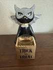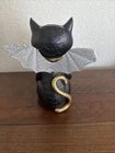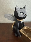 The Yankee Candle Halloween Sophia the Cat Trick or Treat Votive or Tealight Holder is a medium-sized, contemporary-style decorative piece made of resin and glass. This free-standing holder features a hand-painted black, silver, and gold finish, with intricate detailing of Sophia the Cat. It is suitable for holding both votive candles and tealights, making it a versatile addition to any room during the Halloween season. Standing at 7.25" tall and 6" wide with a wing span, this holder adds a touch of charm and festive flair to your home decor.
