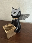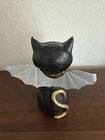 Black Cat Sophie Halloween Candle Warmer with Gold Pumpkin 9 Inches