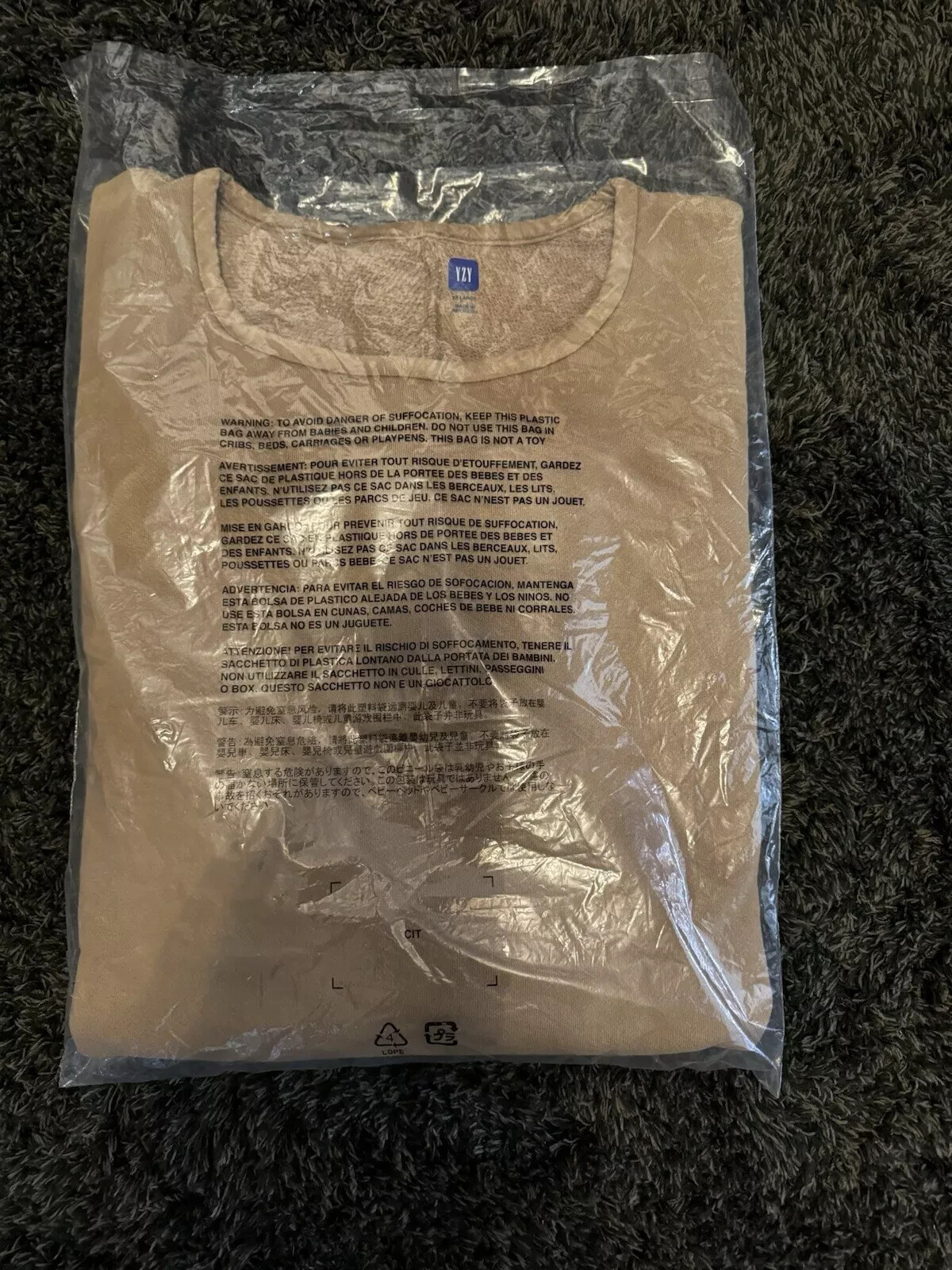 Elevate your wardrobe with this rare Yeezy Gap Fleece Yoke Tee in Bronze, size L. This oversized t-shirt features a round neck and short sleeves, perfect for any season. Made of heavyweight cotton fleece, it is comfortable and durable, with a solid pattern that adds a touch of sophistication. Designed by Yeezy, this tee is perfect for anyone who loves metal themes and wants to add a touch of luxury to their wardrobe. It is perfect for casual wear and can be paired with jeans or joggers. Don't miss out on this rare find, canceled by Yzy but still available in Indonesia.