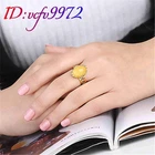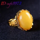 Yellow Amber Rings Amulet Natural Jewelry Charm Designer 18K Gold Plated