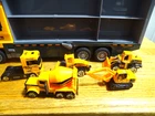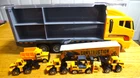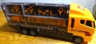 This yellow cargo truck semi and trailer hold 11 Hot Wheel vehicles, making it the perfect addition to any collector's display. The fold-up sides allow for easy storage and transport, while the durable plastic material ensures that it will last for years to come. The Joyin brand cargo semi truck model is designed to hold Hot Wheeled size vehicles and comes with a customized trailer. This item is perfect for boys and girls aged 1-16 years old who love trucks and collecting. The cargo semi truck is made in China and is part of the Hot Wheel car holder and case series.