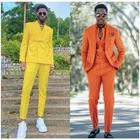 Yellow Orange Men Suits Groom Wedding Business Tuxedos Slim Fit Prom Blazer Plus