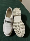 The Yetier Cream platform women's loafers in size 7 are a stylish and comfortable option for casual occasions. Featuring a solid ivory color, slip-on closure, and made from faux leather, these loafers are perfect for the warmer seasons of summer and spring. With a standard shoe width and a flat type design, these loafers are a versatile and trendy addition to any woman's wardrobe. Made by the brand Yetier, these loafers offer a fashionable yet comfortable option for everyday wear.