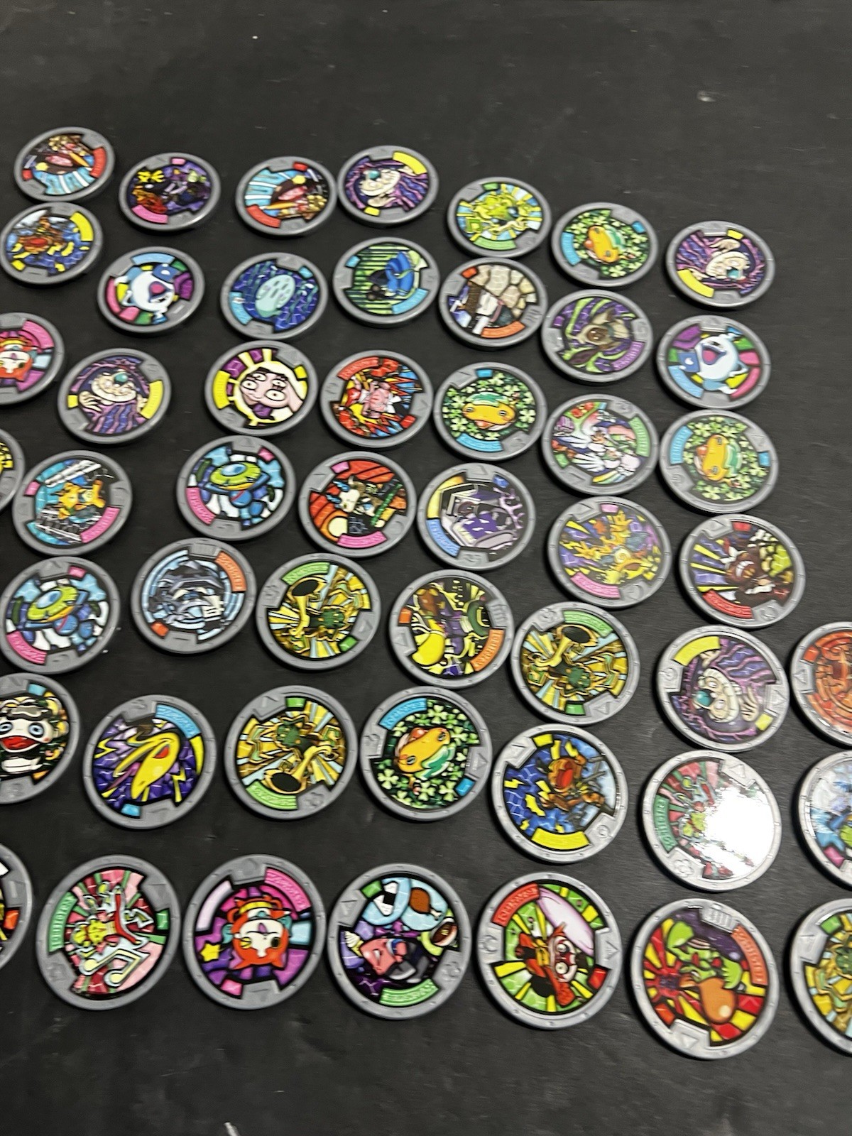 The Yokai Watch Goods lot includes 52 medals featuring characters from the Yokai Watch franchise, all made by Bandai in Japan. These multicolor plastic medals are inspired by the popular Japanese TV show Yokai Watch, making them a must-have for collectors and fans of the series. With a variety of characters and designs, this lot offers a diverse selection of Yokai-themed collectibles to enhance any anime enthusiast's collection.