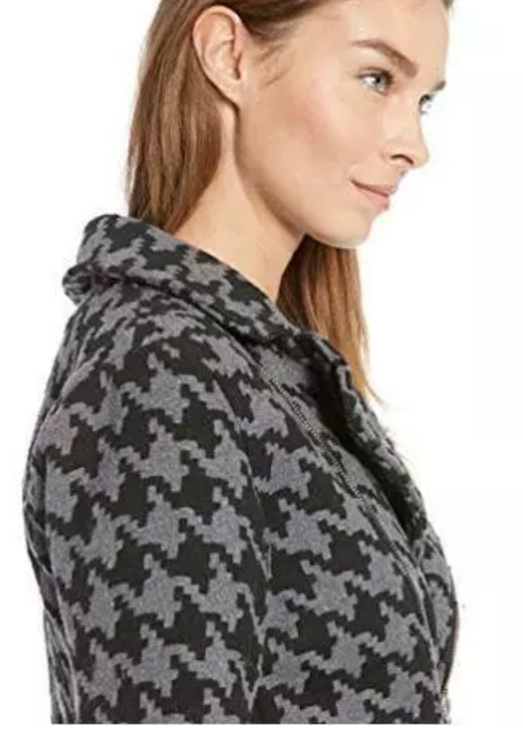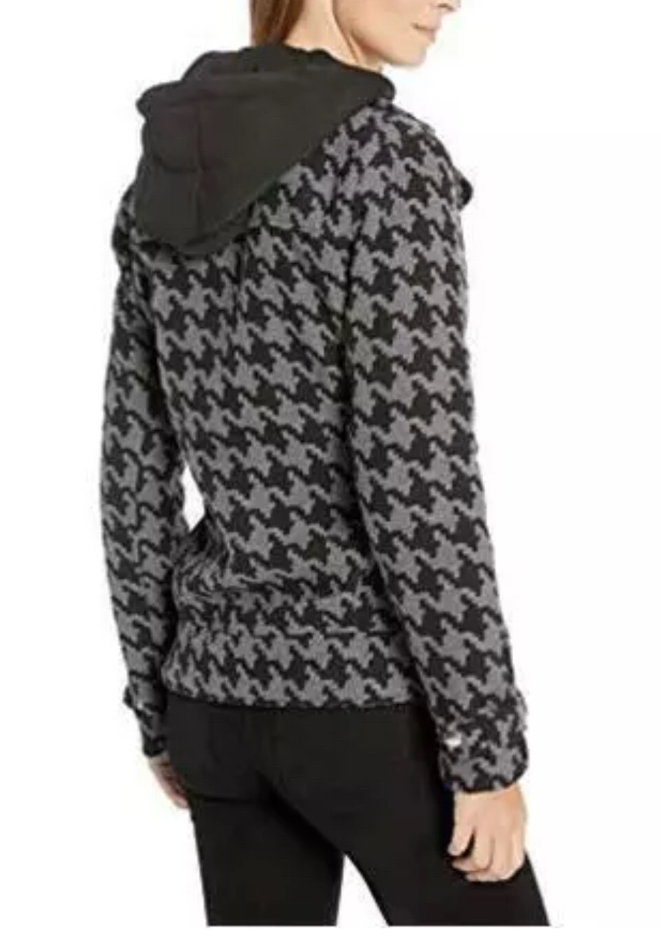 Yoki Women's Double Breast Textured Wool Jacket Black Small Condition is "Pre-owned". YOKI WOMEN'S HOUNDSTOOTH PRINT SHORT WOOL, BLACK/GREY HOUNDSTOOTH, SIZE SMALL Houndstooth Soft material, warm, cozy, Removable Hood SKU# 4158