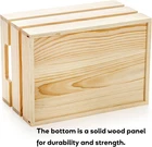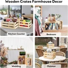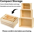Set of 3 Rustic Wooden Crates: Includes three durable wooden storage crates made from natural pine wood with a smooth, polished finish. Sizes: Small – 9.5 × 6.7 × 5.5 in Medium – 12 × 8.6 × 5.5 in Large – 14.6 × 10 × 6.6 in Space-Saving Nesting Design: Crates can be stacked or nested for easy storage. They can be arranged vertically or horizontally for both organization and display. Versatile Storage: Great for organizing plants, crafts, toys, books, magazines, and records. Also useful in bathrooms for towels and toiletries or in kitchens for bread, canned goods, fruits, and vegetables. Rustic Farmhouse Style: Natural wood adds a vintage farmhouse look to any space. The unfinished surface allows you to paint or decorate for DIY projects. Keeps Spaces Organized: Helps reduce clutter on countertops, entryways, or shelves. Built-in cutout handles make it easy to carry items from room to room. Upgraded Construction: Made with thicker 0.25-inch wood slats and solid wood bottoms for added strength. Improved packaging with foam and protective wrap helps prevent damage during shipping. Features: • rustic • All season • natural grain • China • Wipe clean with a damp cloth Size: L
