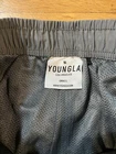 These YoungLA Size Small Track Pants are designed for men in a stylish gray color. Made from Polyamide fabric, they feature a drawstring closure and a high rise waist for comfort. The windbreaker style offers water resistance, making them suitable for various seasons. With features like moisture-wicking, stretch, and breathable material, these pants are ideal for workouts or casual wear. The tapered leg design with elastic waist and slash pockets adds functionality to the activewear joggers.