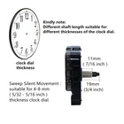 Features: Easy and simple design Suitable for repairing, replacing or making a clock Material: plastic and aluminum Second hand motion: Sweep Accuracy Within ±30seconds deviation each month (in normal temperature) Battery: one 1.5V Carbon-zinc batteries only,not included. Please DO NOT USE Alkaline battery,Rechargeable batteries,they will damage the movement. Dimensions: Case size: approx. 56 x 56 x 16 mm (2.2 x 2.2 x 0.65 inches) Total hour hand length: approx. 41.5 mm (1.63 inches) Total minute hand length: approx. 56 mm (2.20 inches) Total second hand length: approx. 64.5 mm (2.54 inches) Package included: 1 x Quartz clock movement 1 x Second hand 1 x Minute hand 1 x Hour hand 1 X Plastic washer 1 X Brass washer 1 X Brass nut Package : come with specially designed box convenient to carry and protect all from scratching, bending, and other damage while shipping. Clock mechanism size: total shaft length is 19 mm (3/4 inch), thread length is 11 mm (7/16 inch); Sweep silent movement, suitable for 4-8 mm ( 5/32 - 5/16 inch ) thickness clock panel. Clock hands kit: package includes 1 Metal hook,2 pieces of minute hands,2 pieces of hour hands, 2 second hand ,1 second cap and mounting hardware kits, easy for installation; Simple and elegant design, these replacement parts suit well to different styles of clock frame. clock,etc.INSTRUCTIONS - Included along with the movements. Accurate Time-keeping & Quiet Motor: features Youngtown 12888 clock mechanism, which offers watchmaker's accuracy and dependability; equipped with sweeping motion, no ticking; powered by a AA battery Warm notice: there are some clock parts made of aluminum, please do not install them with too much pressure or they will be bent.