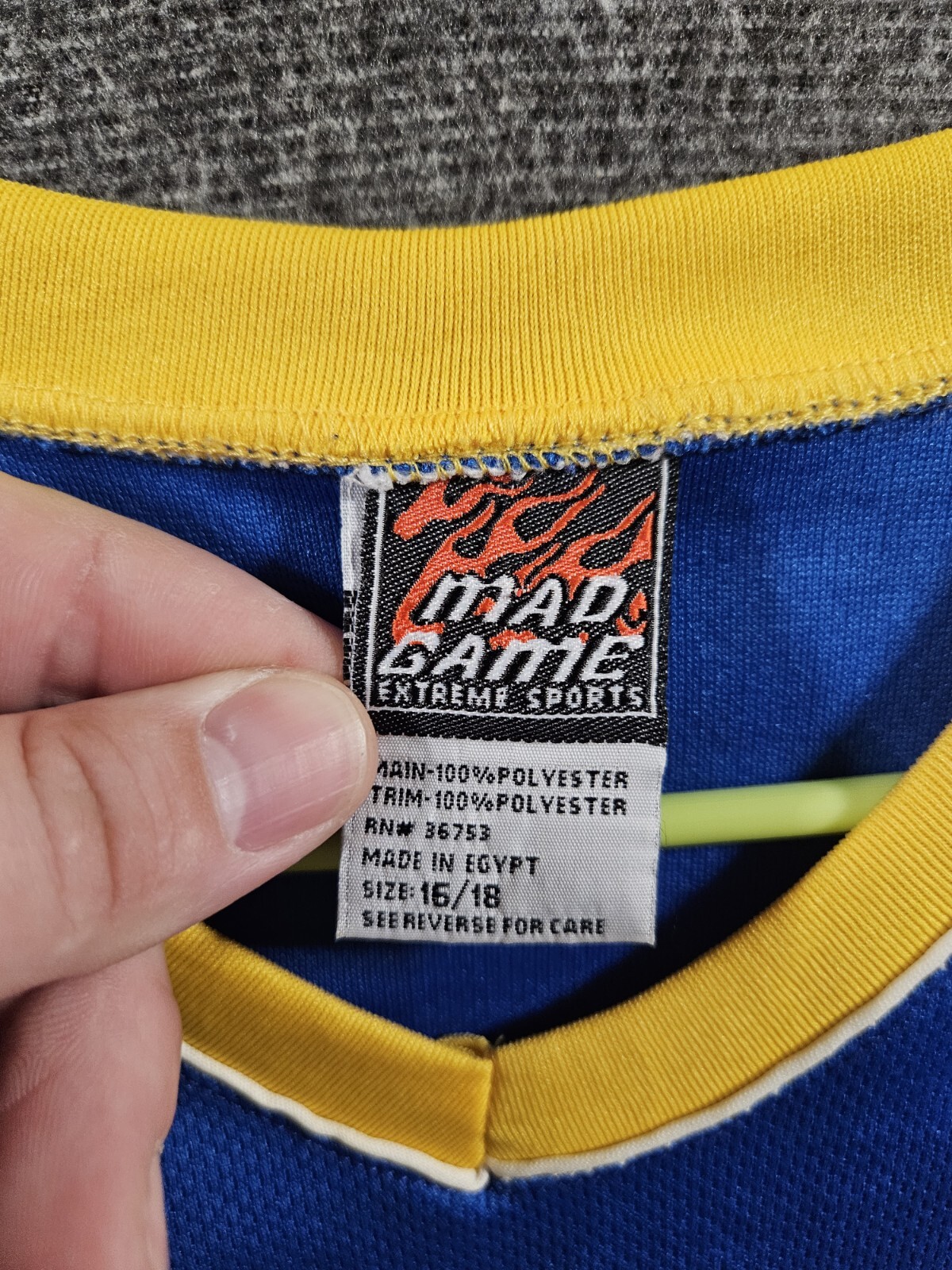 Officially Licensed: No Color: Multi-Color League: National Basketball Association (NBA) Country/Region of Manufacture: Egypt Size: 16 Product: Jersey Team: Golden State Warriors Gender: Unisex Children Brand: Mad Game Sport: Basketball
