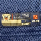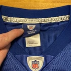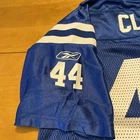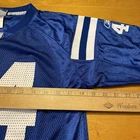 The product is a youth size large (14-16) vintage Reebok NFL jersey of Dallas Clark from the Indianapolis Colts. It is officially licensed by the National Football League (NFL) and designed in the team's blue color with the Reebok branding. This jersey is tailored for boys and is a nostalgic piece for fans of the Indianapolis Colts and Dallas Clark. This is a pre owned jersey please look over pictures and measurements