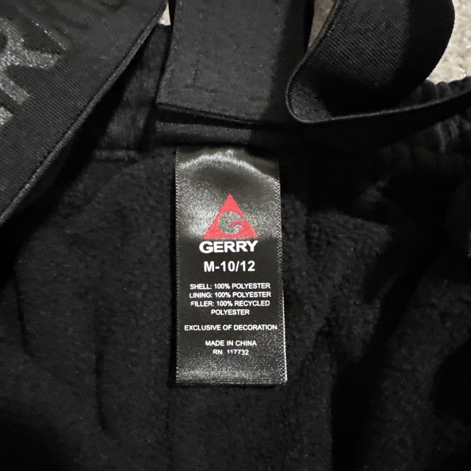 The Gerry Performance Youth Snow Pants with Suspenders in black, size M 10-12, are designed for winter sports activities such as skiing and snowboarding. These insulated pants feature a zip closure, adjustable waist, and removable suspenders for a customized fit. The water-resistant blended fabric and reinforced knees ensure durability, while the cargo and slash pockets provide convenient storage for essentials. With a 25-inch inseam and a bootcut leg style, these pants are suitable for cold weather adventures in winter, fall, and spring. Perfect for adventurous boys looking for both style and performance in their snow gear.