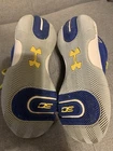 These Under Armour Curry 3ZERO sneakers are perfect for any young athlete. The blue color and sports theme make them a stylish addition to any activewear outfit. The lace-up closure ensures a secure fit while the standard shoe width provides comfort and support. These shoes are designed for boys and have a US shoe size of 3.5. They are made for athletic activities and are perfect for kids who love sports. Under Armour is a trusted brand that produces high-quality athletic gear. These shoes are a great choice for any young athlete who wants to step up their game.