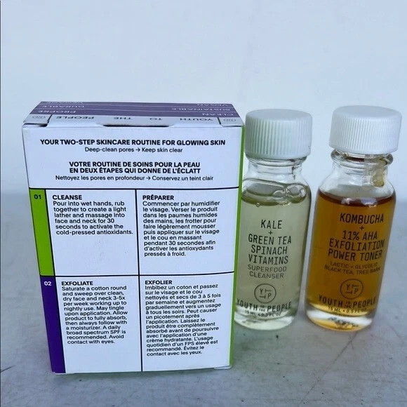 Youth to the People Kale & Green Tea Cleanser, Kombucha + AHA Toner Trial Size.