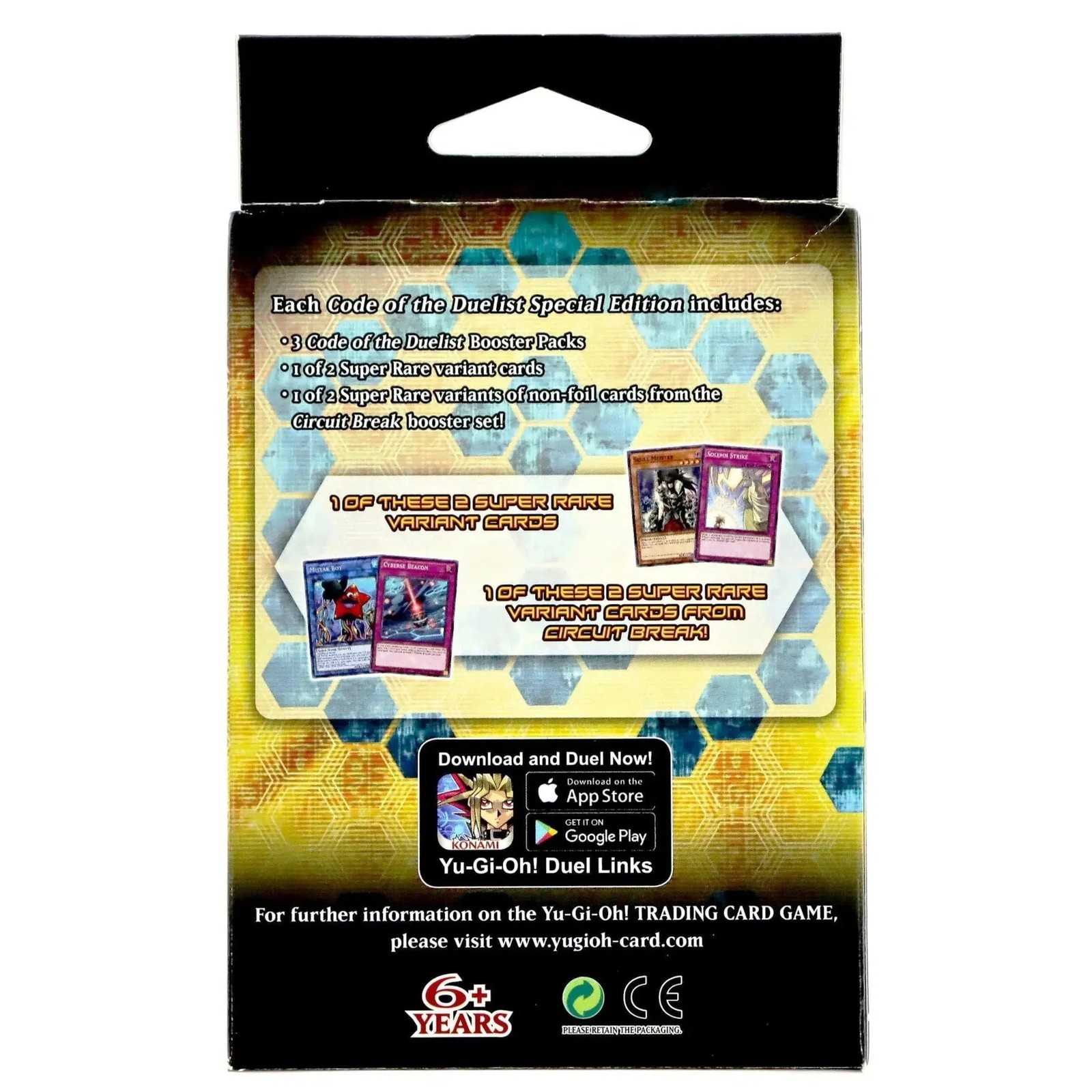 Yu-Gi-Oh! [Code of the Duelist: Special Edition] - Booster Pack Bundle Condition: New Unleash the thrill of unwrapping surprises with the Yu-Gi-Oh Code of the Duelist Special Edition - a treat for TCG enthusiasts. This special edition goes beyond the ordinary, offering not just one but three booster packs, ensuring an abundance of excitement for both new and seasoned players alike. If you're an experienced player, you're already familiar with the anticipation that comes with cracking open booster packs; if you're new to the Yu-Gi-Oh TCG world, this special edition is the perfect introduction. What sets this special edition apart is the inclusion of two additional cards, adding an extra layer of excitement. From these cards, one can be chosen out of two possible Super Rares, while the other serves as a preview for the Circuit Break booster. Released in 2017, the Yu-Gi-Oh Code of the Duelist Special Edition offers a unique combination of booster packs and exclusive cards to enhance your collection or strengthen your deck. The anticipation builds as the back of the package showcases the four featured cards, creating a visual preview of the treasures waiting inside. Whether you're a collector or a duelist seeking to bolster your deck, the Code of the Duelist Special Edition is a delightful package that brings the joy of discovery and the promise of powerful additions to your Yu-Gi-Oh TCG experience. Unwrap the excitement and dive into the world of strategic card battles with this special edition booster pack bundle. Browse what else we have in stock - thousands of toys, games, and other fun merchandise from Poggers, the best toy store in the world!