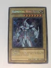 The product is a Secret Rare Limited Edition Elemental HERO Neos card from the Yu-Gi-Oh! TCG, specifically from the "- Yugi -" set. It is identified as card CT03-EN001 and was manufactured by Konami.