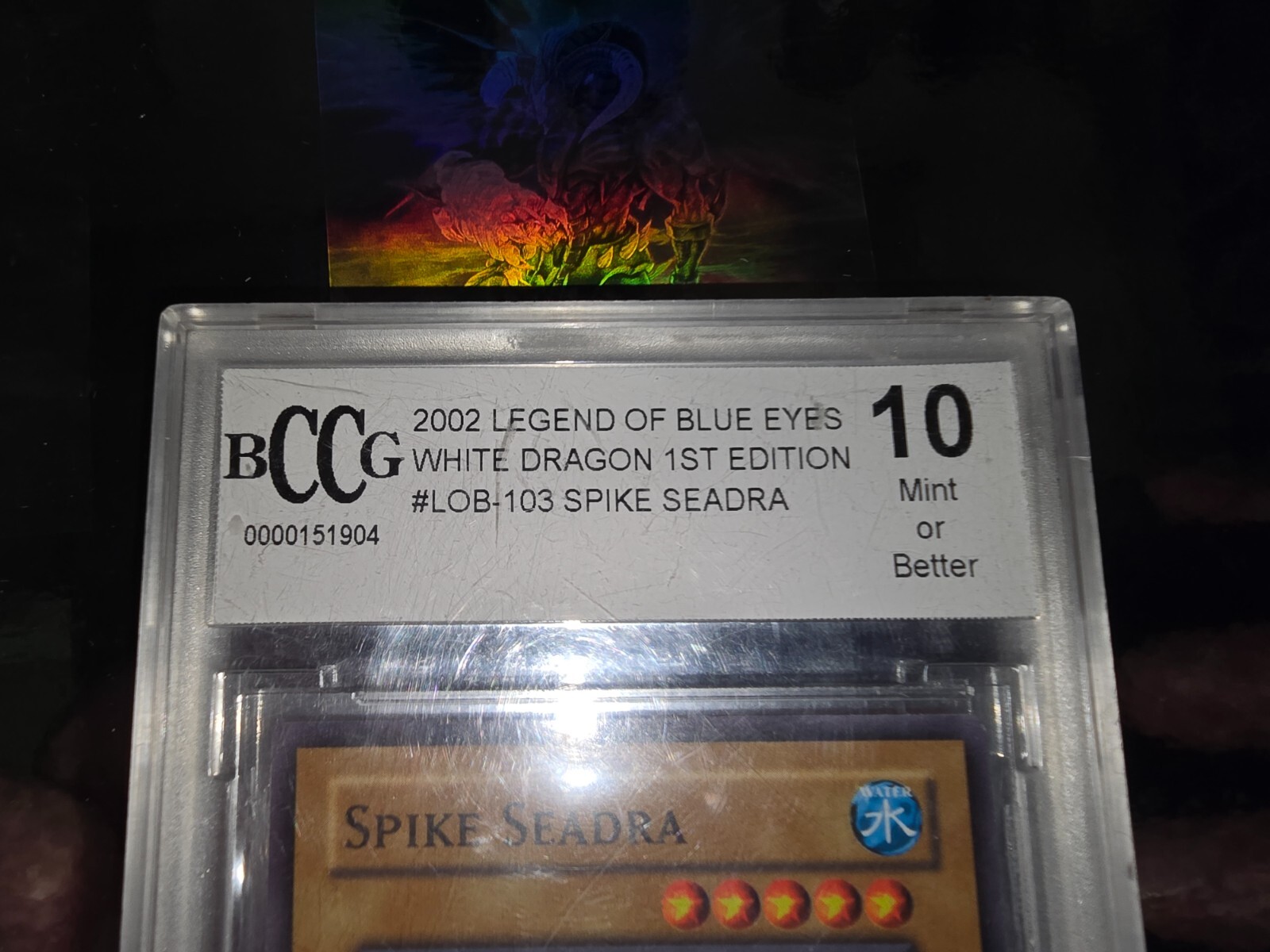 Finish:RegularCharacter:Spike SeadraDefense/Toughness:1300Material:Card StockFranchise:Yu-Gi-OhCard Type:MonsterAttribute/MTG:Color:WaterFeatures:1st EditionCard Number:LOB-103Year Manufactured:2002Rarity:CommonGame:Yu-Gi-Oh! TCGManufacturer:KonamiAttack/Power:1600Language:EnglishCreature/Monster Type:Sea SerpentCard Name:Spike SeadraSet:Legend of Blue Eyes White DragonCard Size:JapaneseVintage:YesAutographed:NoCountry/Region of Manufacture:United States